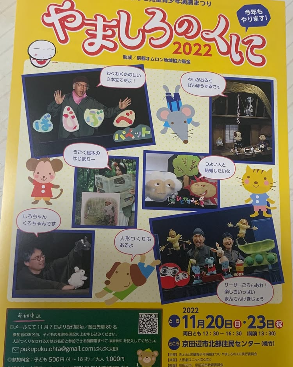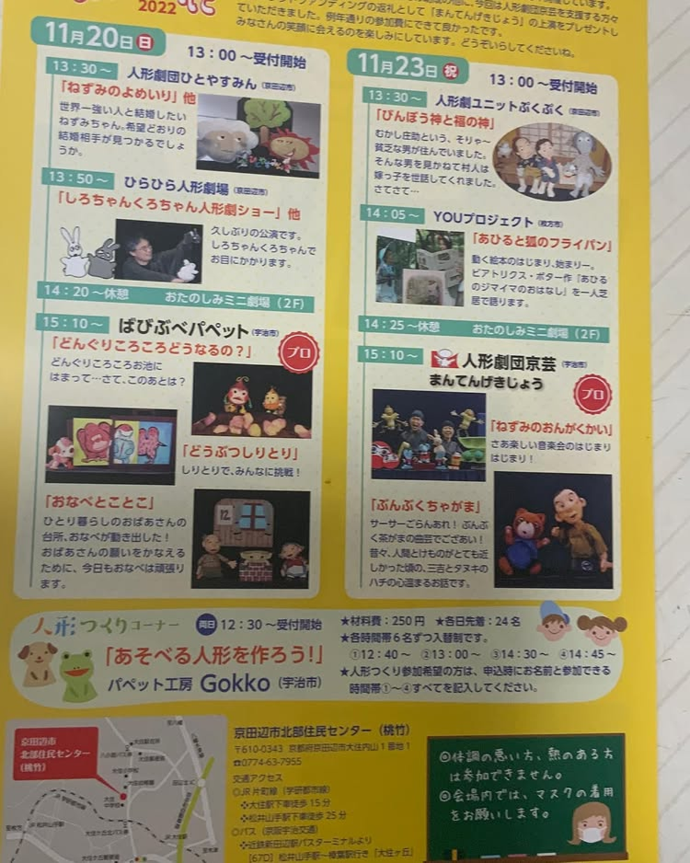2022/11/23 ワークショップ 簡単パペット「うさぎ」のワークショップ 11月20日・23日、第25回きょうと児童青少年演劇まつり「やましろのくに2022」にて。 親子でパペット作りを楽しんで、出来上がったパペットは、フォトコーナーで写真撮影。 ちょっと早いけど、「メリークリスマス」&「あけましておめでとう」 来年は卯年! News一覧へ戻る